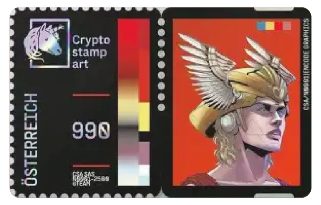 Crypto stamp goes Art: Cooperation with renowned NFT artists. Launch in 2022 with the Mercury by Pr1mal Cypher: Reimagining of Austria’s most valuable stamp from 1851.