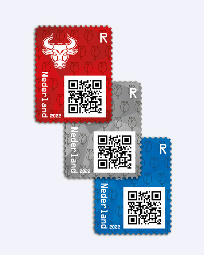 The first international joint issue of a Crypto stamp - in cooperation with the Austrian Post. With a virtual highlight: augmented reality. The motif is the bull, a symbol for rising stocks in the financial world. The Austrian and Dutch Crypto stamps differ only in the printed color scheme (national colors) and the plant pattern in the background (edelweiss vs tulip). Colour distribution: • Black: 52,3 % • Green: 26,7 % • Blue: 13,3 % • Yellow: 6,7 % • Red: 1 %