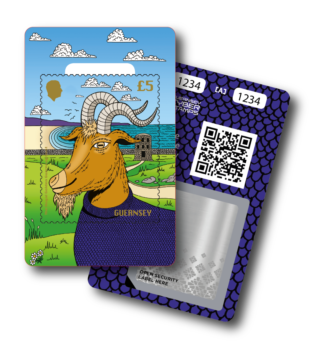 Guernsey Cyberstamps combine the timeless charm of physical postage stamps with the fun and flair of digital collectibles. Each stamp is a limited-edition physical product that unlocks a digital twin: a charming, one-of-a-kind illustration of a Royal Guer