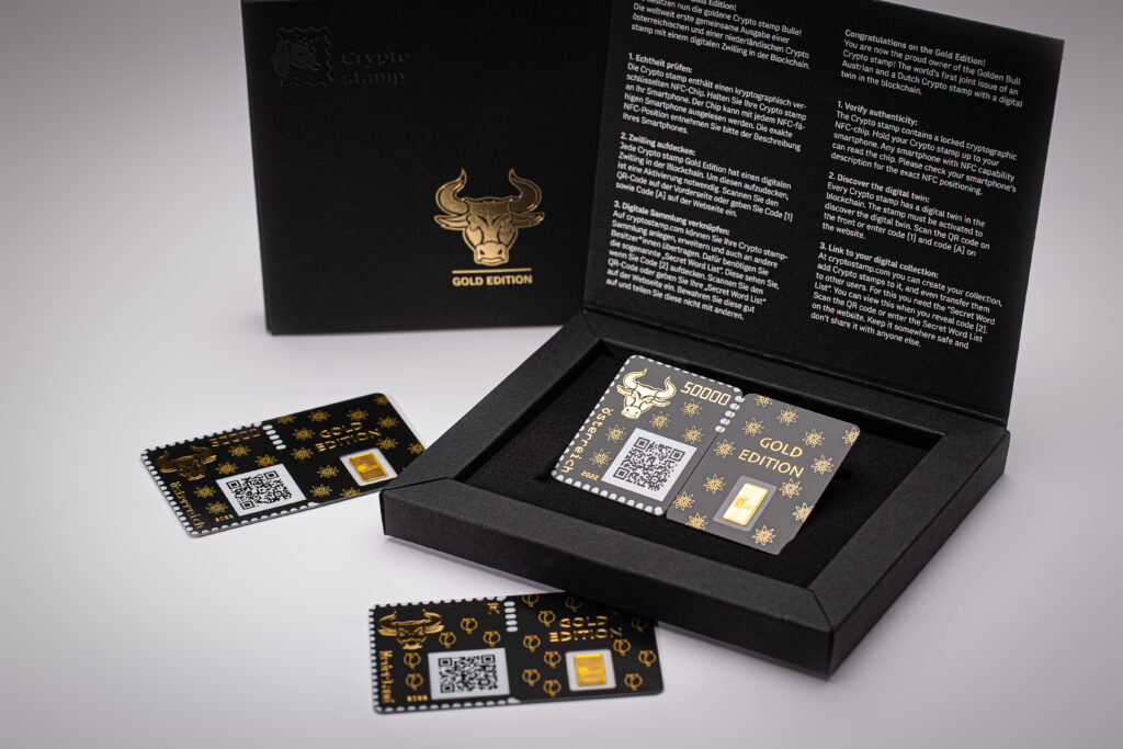 Our Crypto stamp 4.0 Bull has been precious right from the start – and now we are gilding him properly. It comes with a 1g unicorn gold bullion.