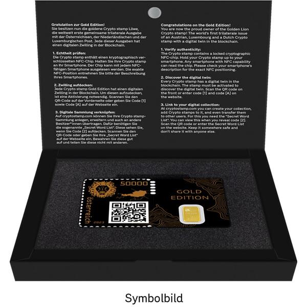 On 22.11.2022 the Crypto stamp Gold Edition Bull was released. Just like Crypto stamp 4.0, the Gold Edition is also a joint issue with Austria Post and Post NL.